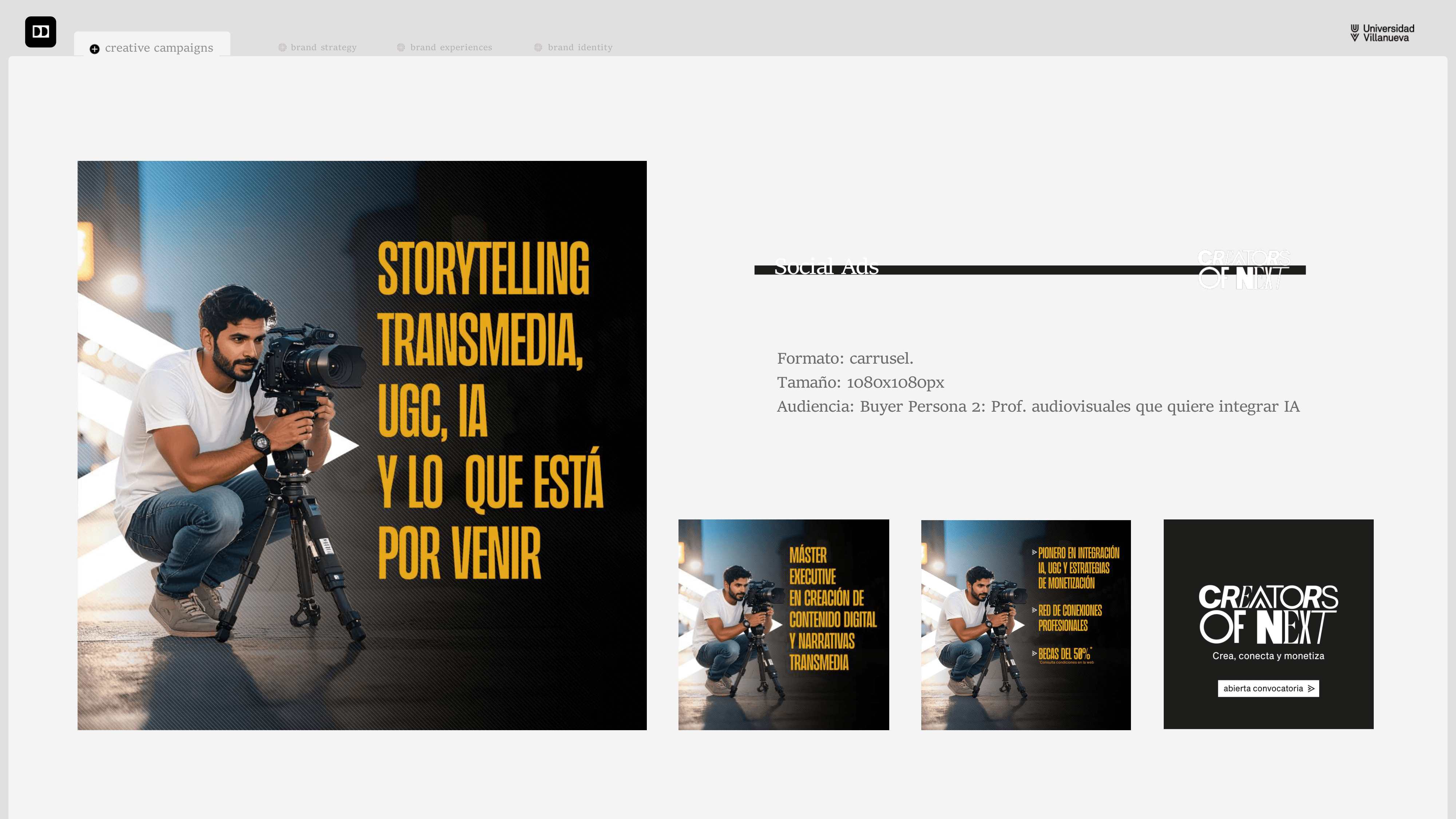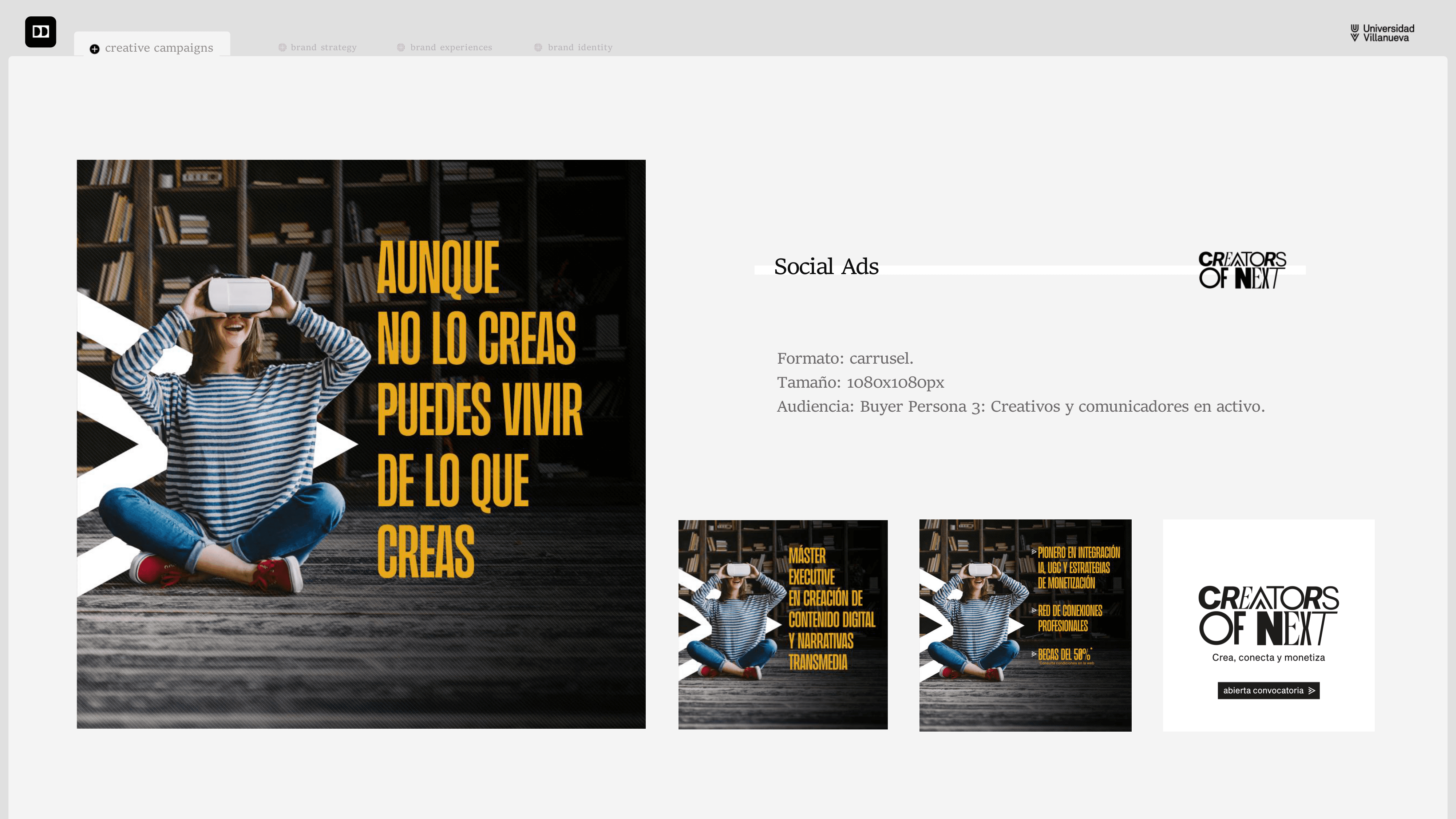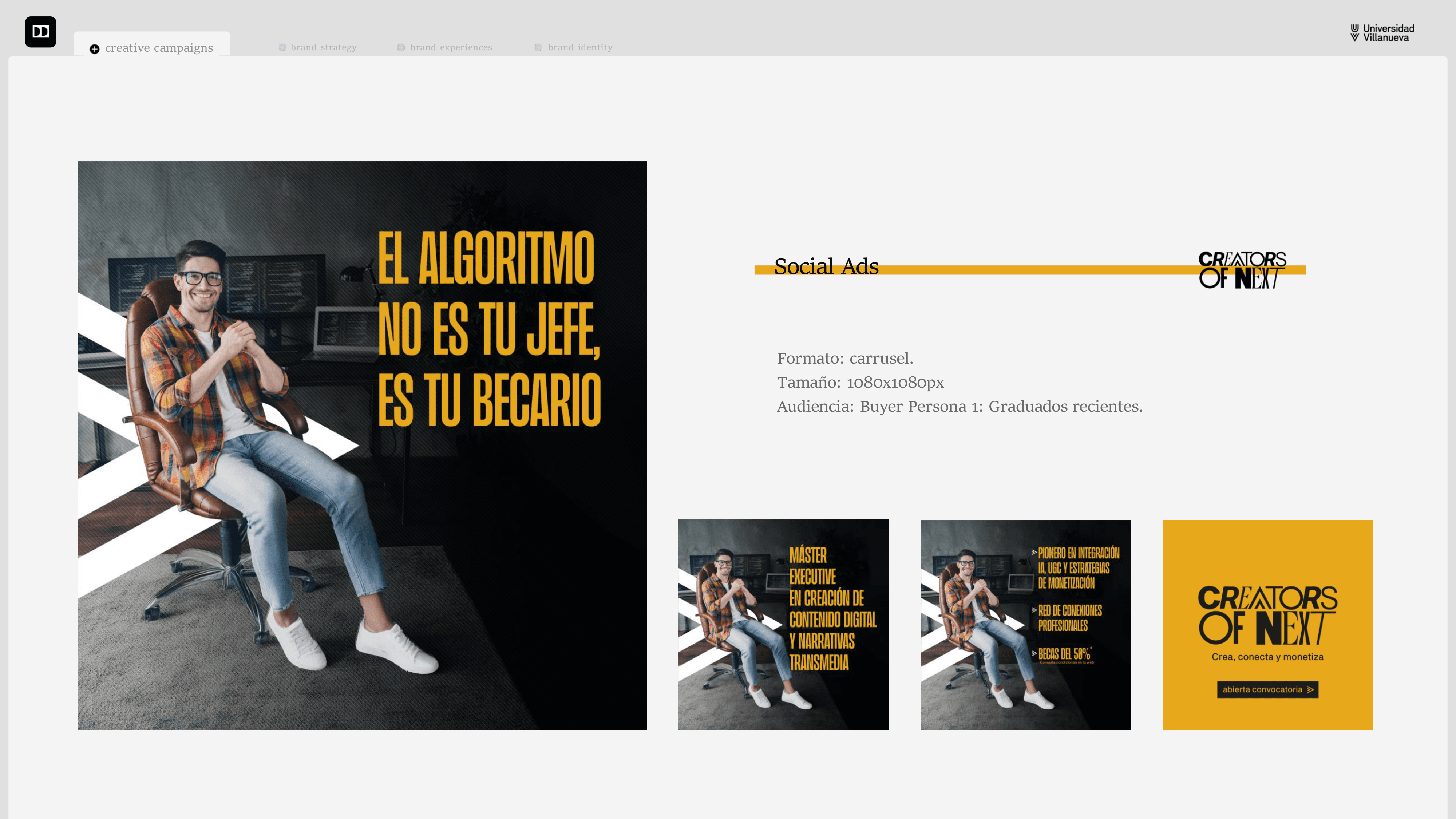 Este proyecto nos permitió ofrecer un planteamiento disrruptivo, respecto a la línea de comunicación que la institución viene siguiendo para promocionar sus programas.